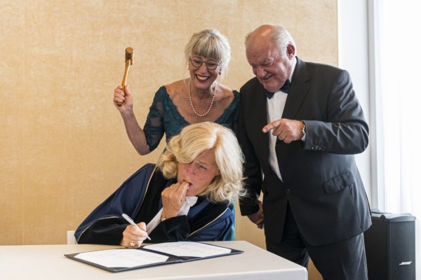 Waarom Marjon? Sinds 2013 ben ik BABS (Buitengewoon Ambtenaar Burgerlijke Stand) bij de gemeente Velsen. Daarnaast mag ik ook elders trouwen. Bewust hebben jullie gekozen voor een formele status van jullie relatie. Een feestje waard! En daar werk ik graag aan mee. Ultiem geluk om twee mensen, die van elkaar houden, in de echt te mogen verbinden. Ja, ik wil er dan ook alles aan doen om deze ceremonie voor jullie bijzonder te maken. Een toegesneden toespraak. Aandacht voor familie, getuigen en andere gasten zijn daarbij van groot belang. Journalistieke werkervaring heeft me geleerd naar mensen te luisteren en hun verhaal te vertellen. Een vak dat me als trouwambtenaar prima van pas komt. Sjiek, ingetogen, gezellig, veel humor? Jullie bepalen de sfeer. Samen komen we eruit om jullie trouwen voor 100% te laten slagen.